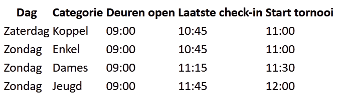 - Indien minderjarig, toelating van volwassen (zie algemene voorwaarden)
